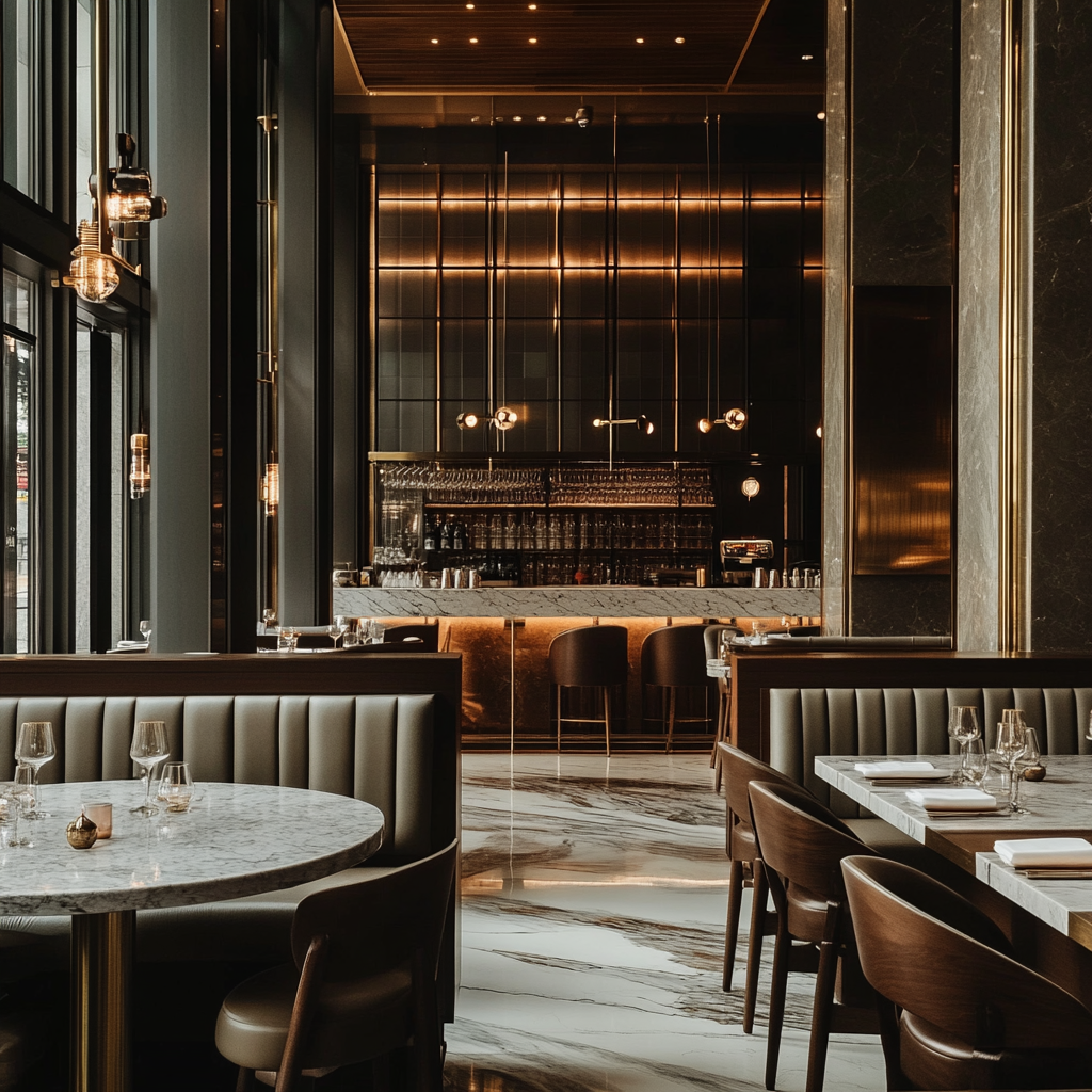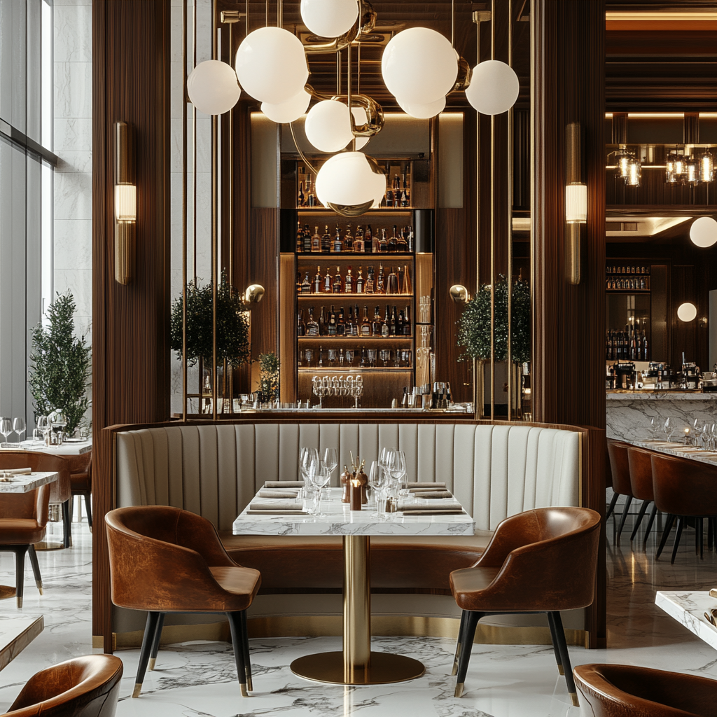 The most memorable restaurants follow a material narrative—whether it’s brass + walnut, or rattan + stone—so the space feels intentional, not random.