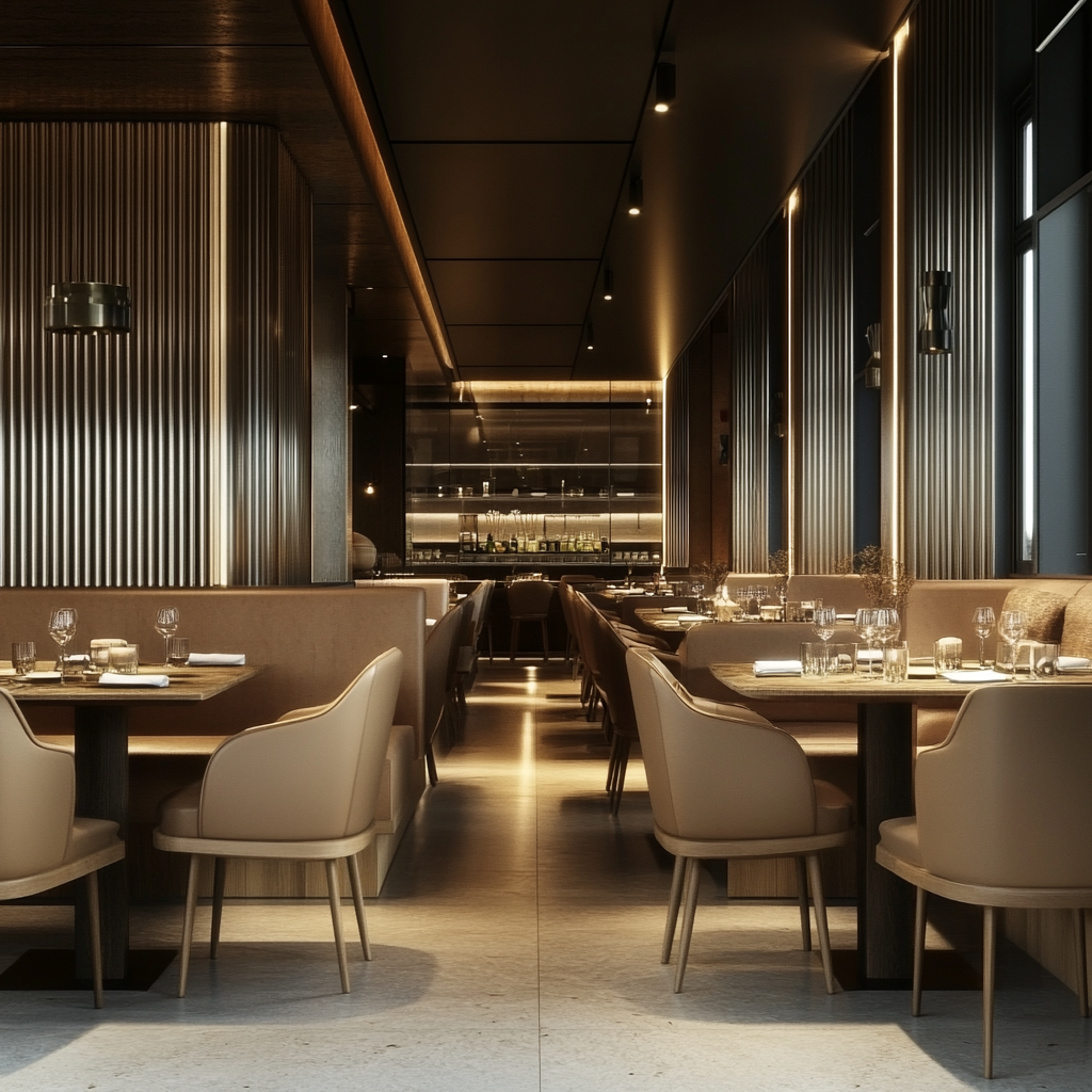 Different seating types fulfill distinct roles in a restaurant. Booths provide privacy and help define spatial boundaries, while chairs introduce flexibility needed for dynamic customer flow. Tables establish the rhythm of the floor plan by dictating spacing, alignment, and guest capacity. A cohesive seating system ensures these elements complement rather than compete with one another, resulting in a dining room that feels balanced and easy to navigate.