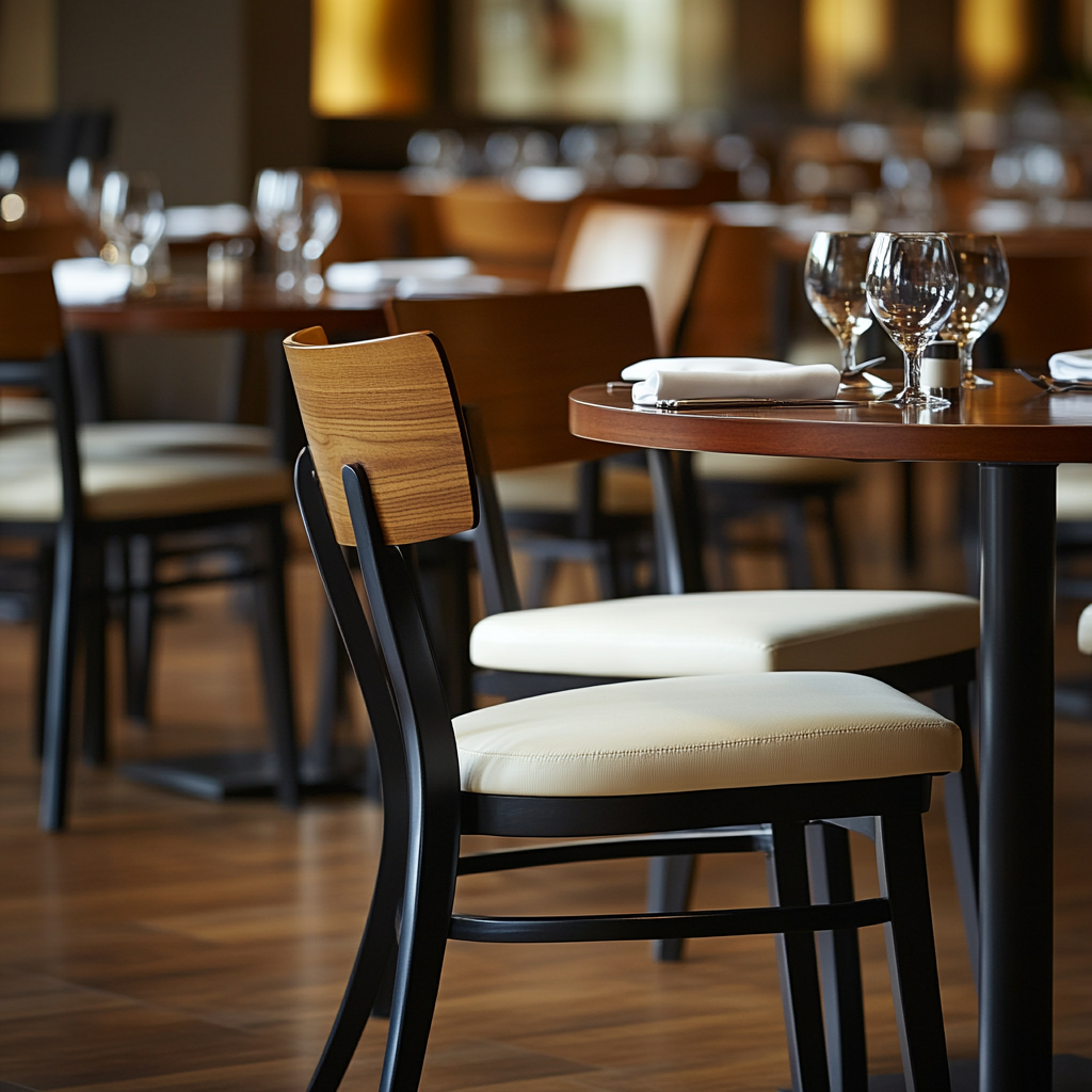 Comfort determines how long guests want to stay. High-density foam, supportive back shapes, and ergonomically curved seats make a noticeable difference, especially in restaurants where guests dine for extended periods. Upholstered chairs create a softer, more inviting feel, but the material must be commercial-grade to resist stains and maintain shape.