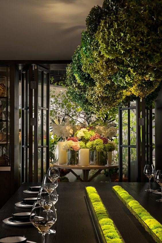A green wall, or vertical garden, is a striking feature that can transform the look and feel of your restaurant. This can be an entire wall covered with lush plants or a series of smaller, framed plant installations. Green walls are particularly effective in spaces with limited floor area, maximizing the use of vertical space to bring nature indoors. Additionally, green walls can help improve air quality and acoustics, making the dining experience more pleasant for your customers.