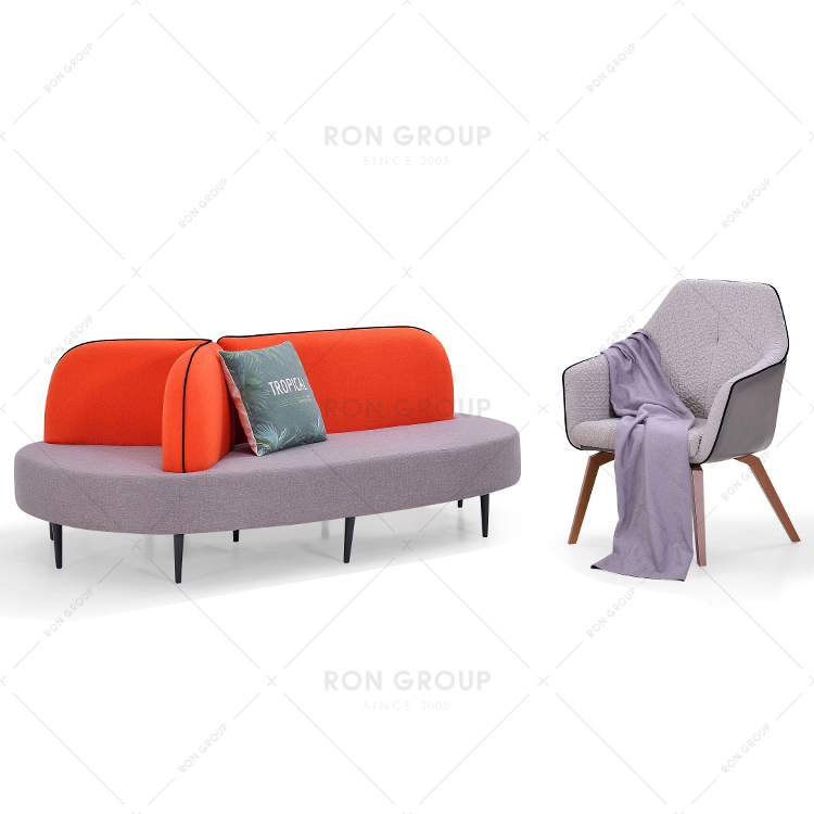 Ron Group's seating options showcase a bold approach to design, combining clean lines with vibrant colors to create statement pieces that can light up any room. The sleek, curved sofa in a striking contrast of orange and grey not only adds a pop of color but also invites guests to relax and enjoy their surroundings. Paired with the minimalist yet chic armchair, these pieces provide both functionality and modern elegance to your space.
