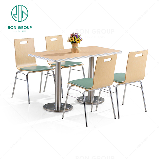 The modern and versatile design of Ron Group's restaurant furniture makes it suitable for a variety of dining settings. Our collection includes sleek and contemporary table and chair sets that can be easily integrated into different decor styles. Whether you are furnishing a casual cafe, a sophisticated restaurant, or a hotel dining area, our furniture adds a touch of elegance and sophistication. The minimalist design with clean lines and neutral colors enhances the overall aesthetic of your space, creating an inviting atmosphere that encourages guests to relax and enjoy their meal.