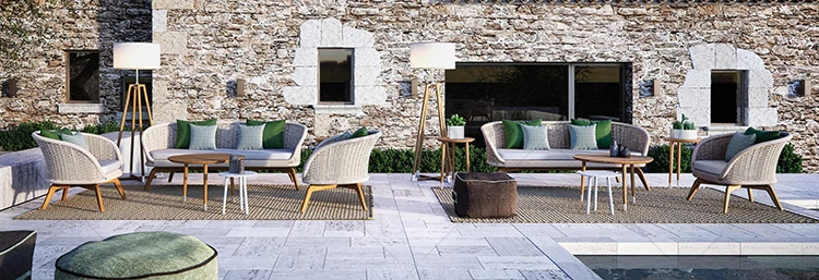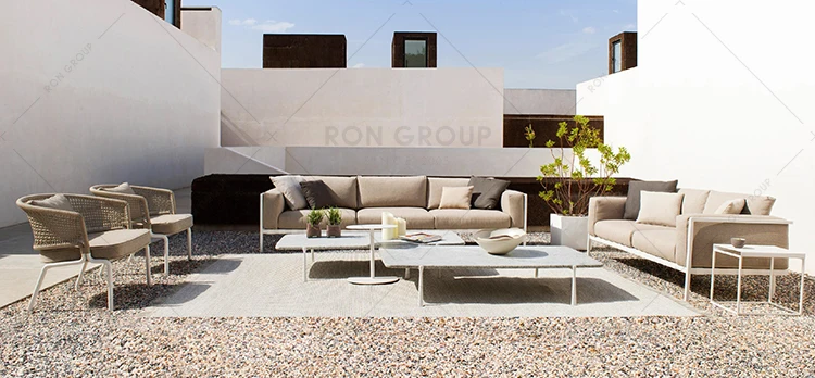 Cheap Price Outdoor Patio Beach Courtyard Dining Restaurant Furniture Waterproof Cushions Rope Dine Rattan Sofa Garden Chairs