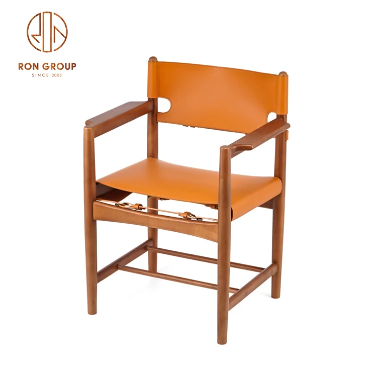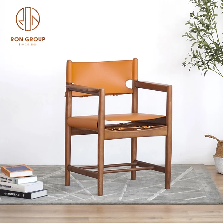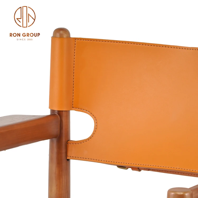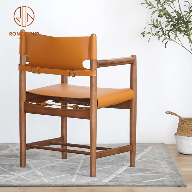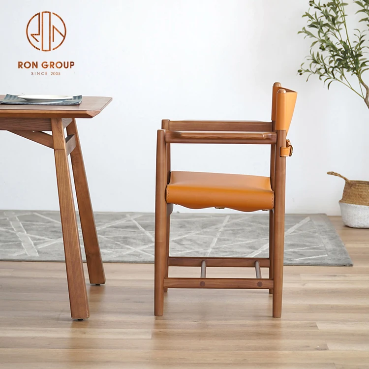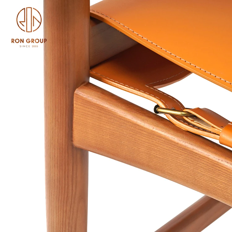 Wholesale Modern New Unique Design Fashion Popular Restaurant Furniture Elegant Solid Ash Wood With Saddle Leather Dining Chiars