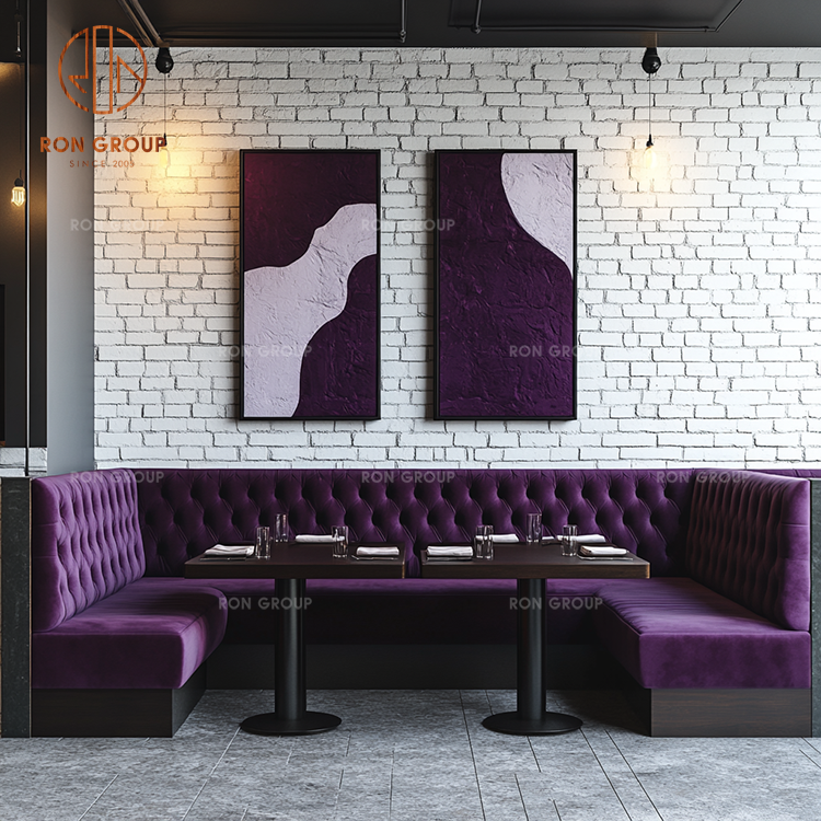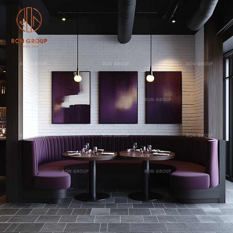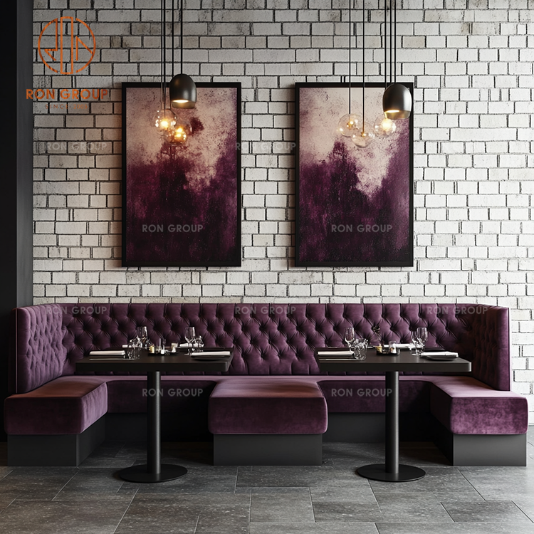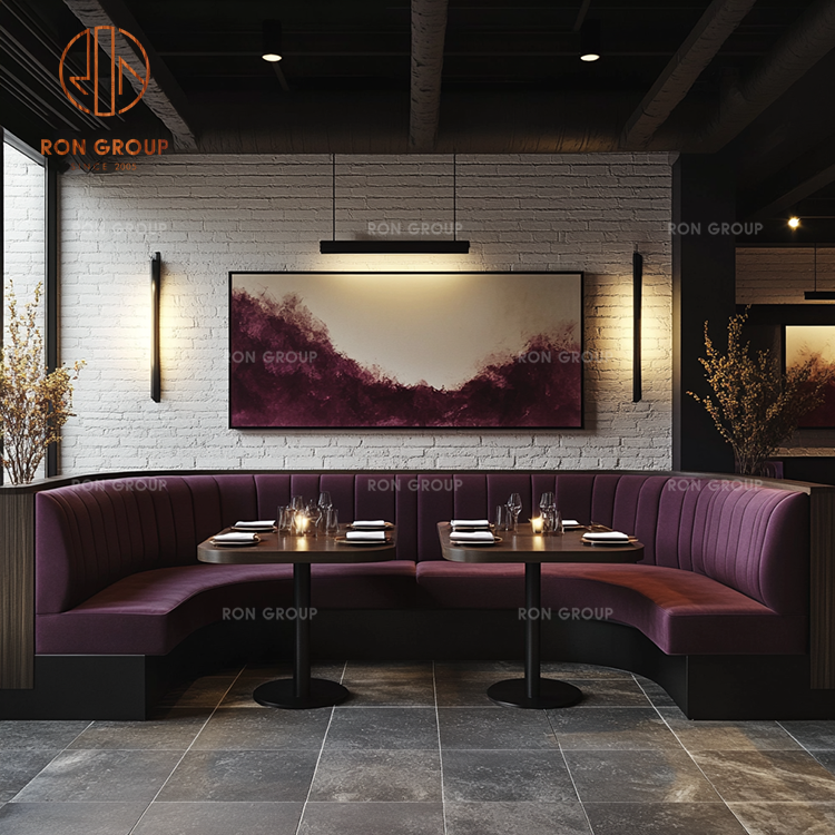 Luxury Curved Velvet Booth Seating with Wooden Dining Tables and Upholstered Chairs for Restaurants and Cafés