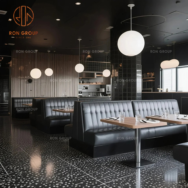 Keywords: Modern Restaurant Banquette Set Black Tufted Leather Booth