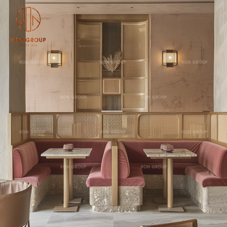 Modern Velvet Booth Seating with Marble Square Tables for Coffee Shops & Restaurants