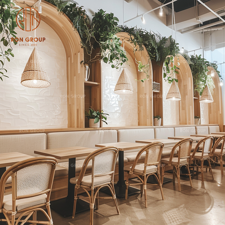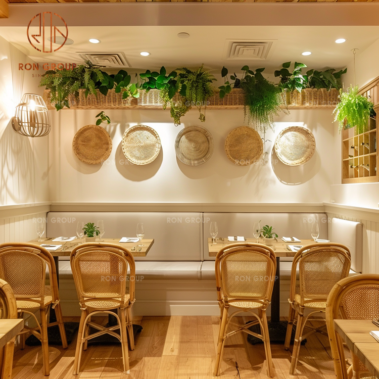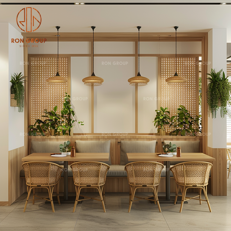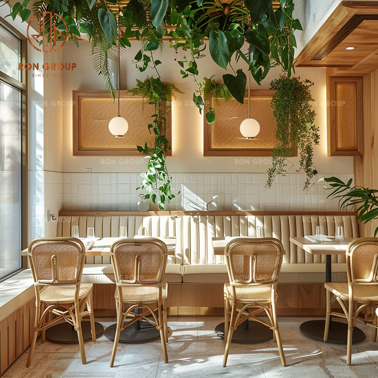 Product name: Modern Restaurant Furniture Set Light Wood Tables with Rattan Chairs