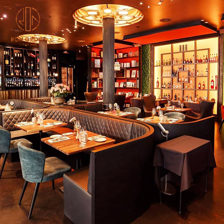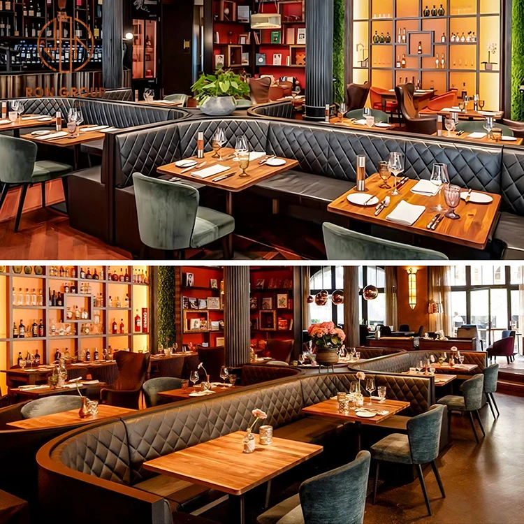 Luxury Diamond Quilted Leather Booth Seating with Wood Tables for Upscale Restaurants