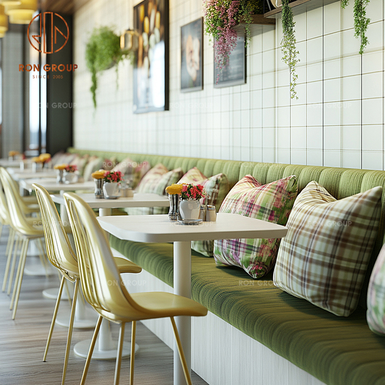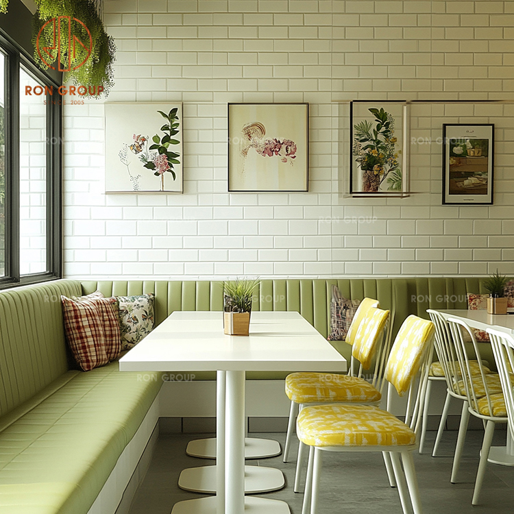 Keywords: Green Fabric Sofa Booth,Square Wood Dining Table