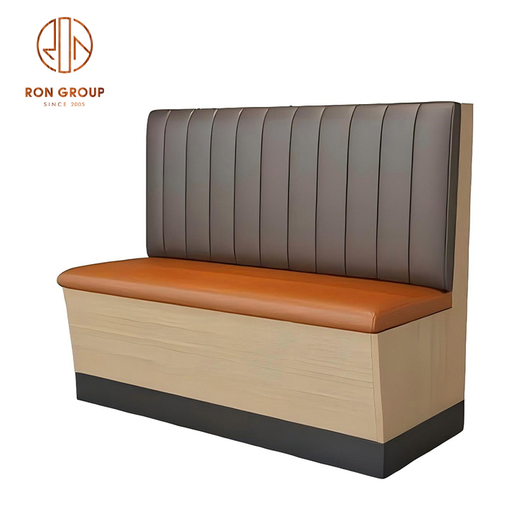 Commercial Restaurant Booth Seating Set with Light Brown Sofa Booths and Square Marble Tables