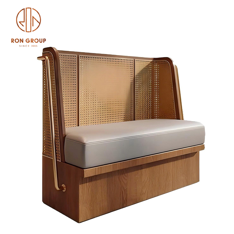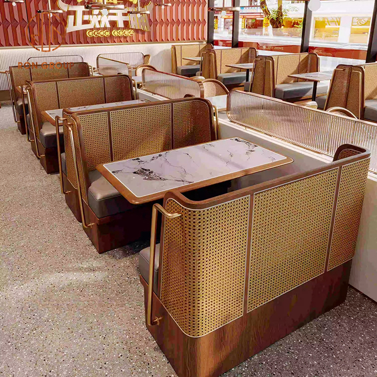 Keywords: Coffee Shop Marble Tabletop Wood Frame Sofa Booth and Rattan Chairs