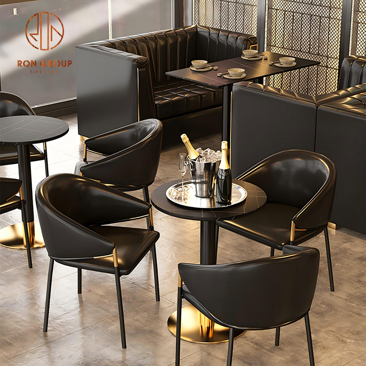 Description: Leather Sofa Booths with Marble Square Tables