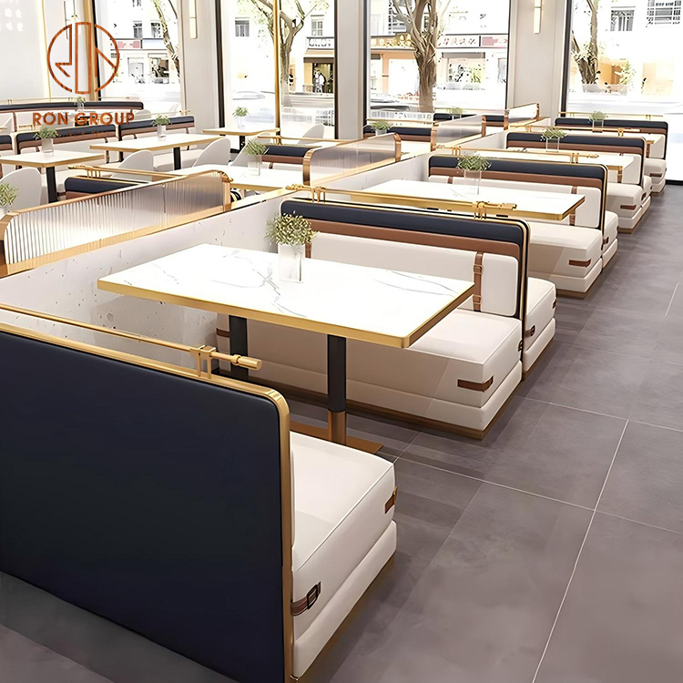 Description: Leather Sofa Booth with Gold Trim,Marble Table