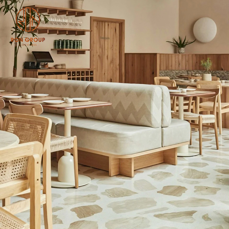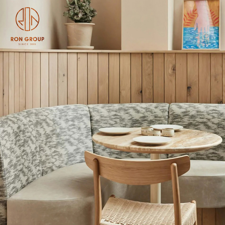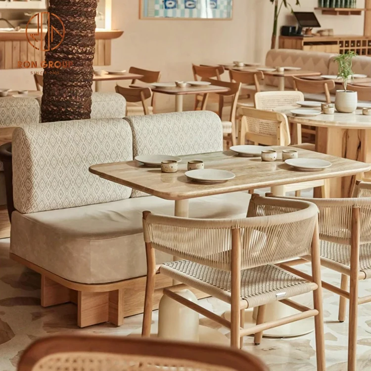 Premium Seating: Breathable fabric booth seating and rattan chair with high density foam filling for long-lasting comfort.