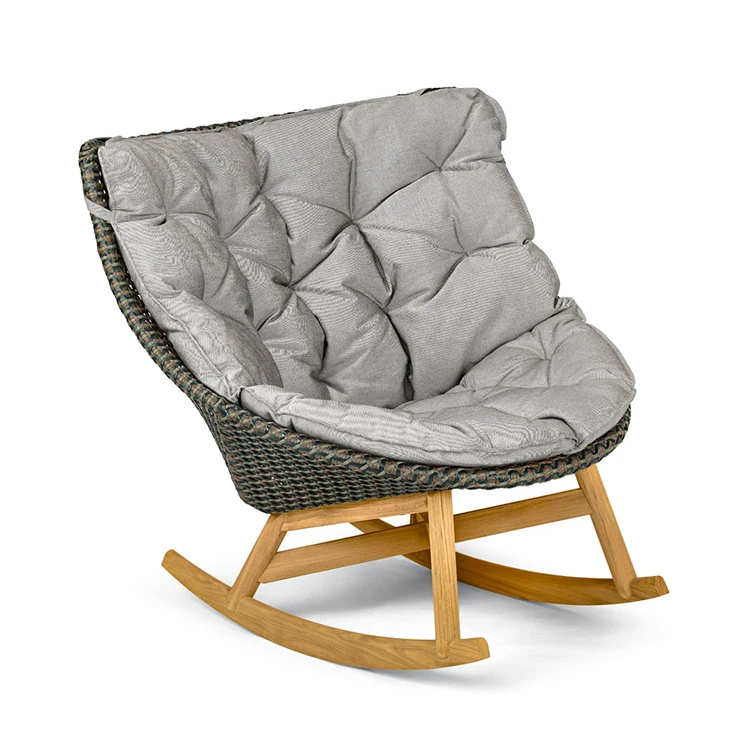 High quality outdoor furniture patio beach solid teak wood leisure chairs hotel chaise lounge garden rope rattan chair