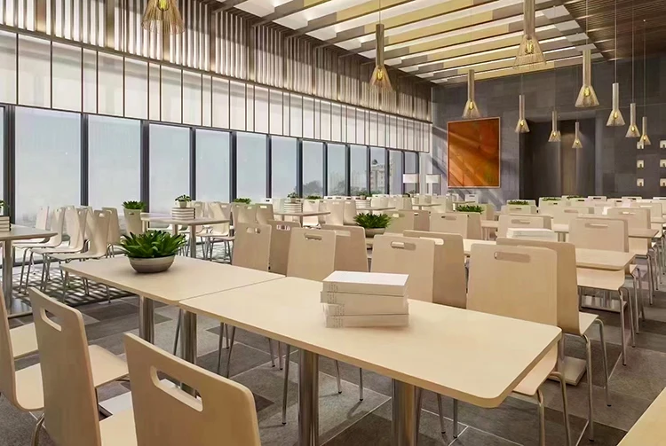 | Product Name | Commercial OEM Student Cafeteria Fast Food Dining Restaurant Furniture Bent Plywood Canteen Table and Chair with Curved Backrest |